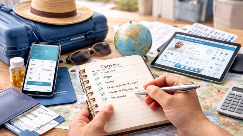 عند السفر إلى بلد آخر لتلقي العلاج، من الضروري معرفة مسار الرحلة بدقة. تبدأ الخطوات باختيار الوجهة والطبيب، ثم مراجعة الوثائق الطبية ووضع خطة العلاج. بعد الاستشارة، يتم ترتيب السفر والإقامة وتحديد موعد الجراحة. وأخيرًا، يُجرى العلاج، ثم تُحدد خطة المتابعة بعد العودة.